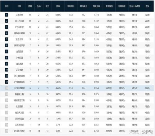 CBA积分榜最新排名出炉!辽篮惨败广东跌至第10:上海第1山西第7