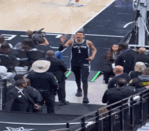 在通道中,乐观的文班还不忘告诉球迷