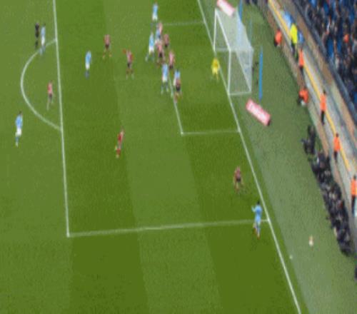 第12分钟,阿莱恩将球踢入门中,攻入一线队处子球,曼城1-0!